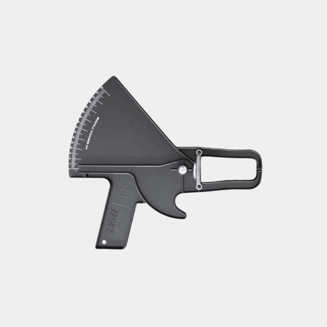 Este plicómetro es una herramienta esencial para medir el espesor de los pliegues cutáneos en diferentes partes del cuerpo.